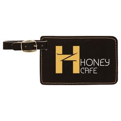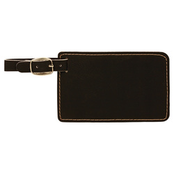 This leatherette luggage tag offers the look and feel of genuine leather at a fraction of the price. This richly textured, synthetic material is water resistant, easy to clean and durable enough for the rigors of daily use. This item can be Laser Engraved or UV Printed. Removable white paper insert has lines for Name, Address & Phone. Will hold insert up to 2 1/8" x 3 3/8". Strap has silver buckle. Laser engraved leaving a Gold imprint. 4 1/4" L x 2 3/4" H x 1/16" Thick